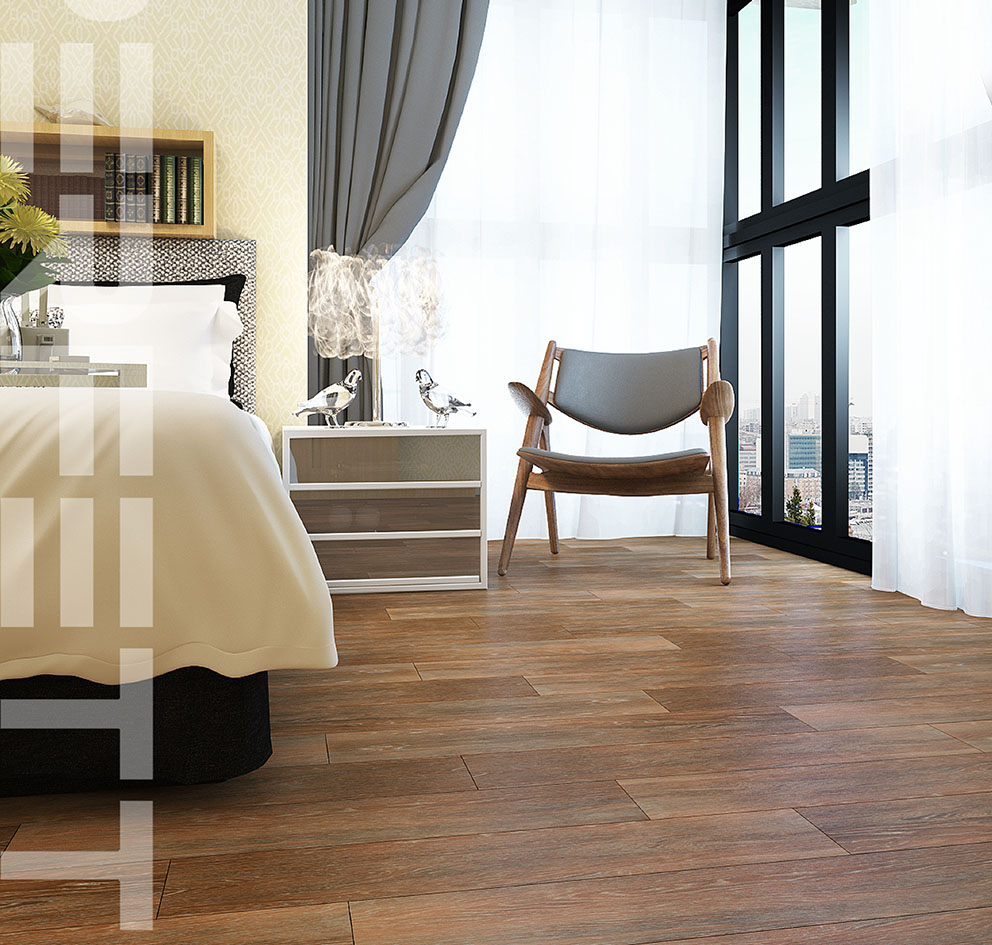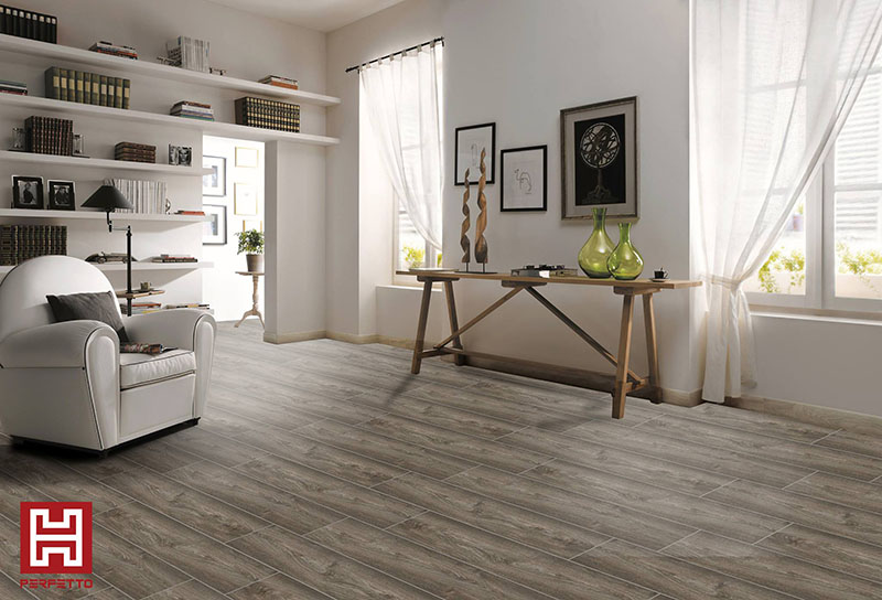 Hoan My wood tiles are based on natural wood, applying advanced manufacturing techniques to simulate whole wood lines. In addition, for the most realistic surfaces, the wood strips will be machined to avoid overlapping between the tiles. The defects of the wood will be completely eliminated by the character of bricks: the strength will be increased by compressing the material at high temperature to 6/10 on the Mohs scale, the surface abrasion resistance of 750 rounds - Level II, waterproof E <0.5%, you will no longer worry about thermal expansion or water absorption into wood. The cleaning also becomes extremely easy with the use of anti-corrosive materials from the cleaning chemicals.